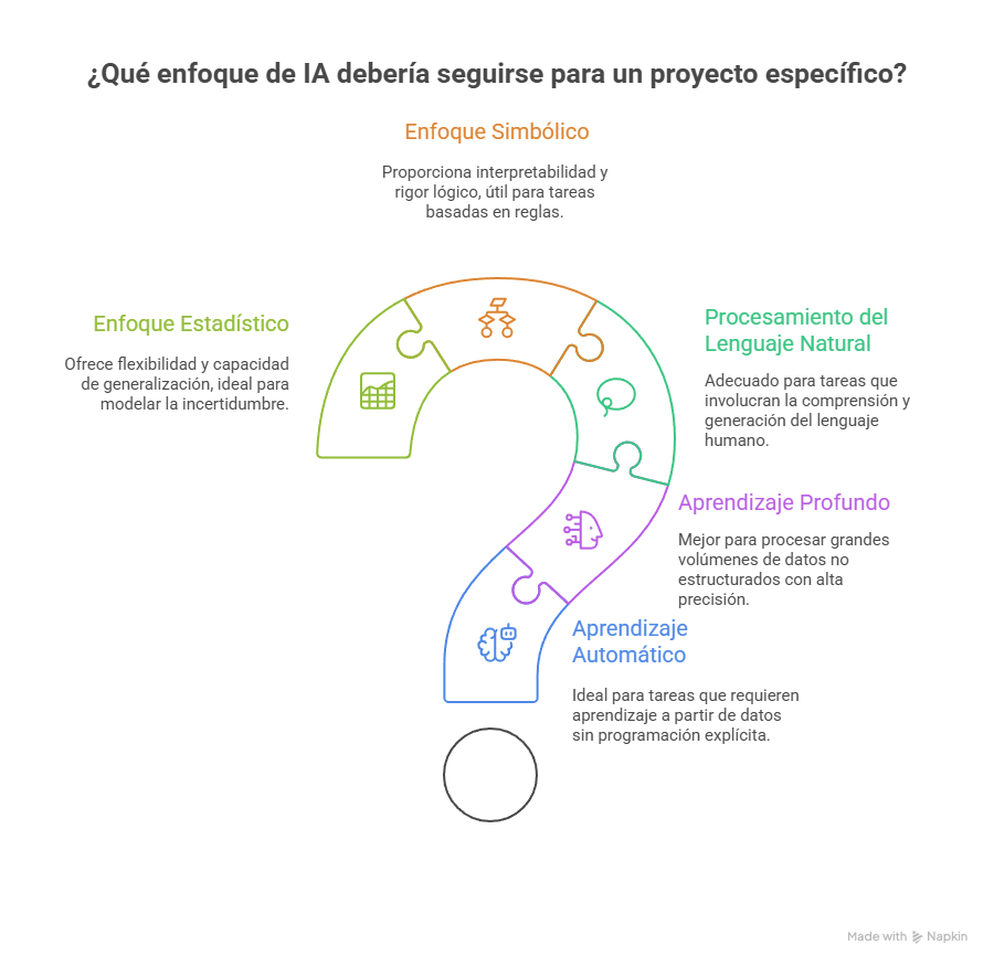 Ambos enfoques no deben entenderse como excluyentes, sino como complementarios. El simbólico ofrece interpretabilidad y rigor lógico, mientras que el estadístico brinda flexibilidad y capacidad de generalización en contextos de grandes volúmenes de datos. En la actualidad, existe un renovado interés en los enfoques híbridos, que buscan integrar la robustez del razonamiento simbólico con el poder predictivo de los métodos estadísticos.