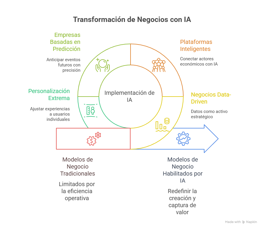En definitiva, la IA no es solo un habilitador tecnológico, sino un motor de innovación estratégica que impulsa la emergencia de modelos de negocio antes impensables, transformando radicalmente la manera en que las empresas se relacionan con el mercado, con sus clientes y con la sociedad en general.