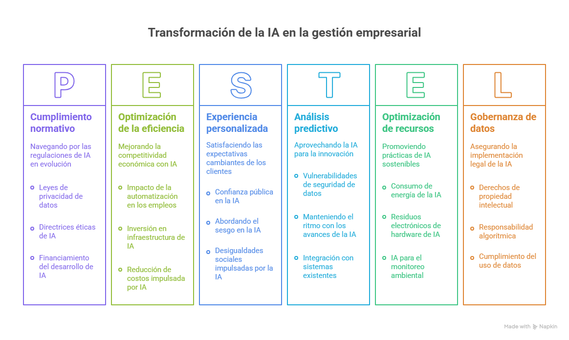 El impacto de la inteligencia artificial en la gestión empresarial debe entenderse en dos planos complementarios. Por un lado, en el nivel operativo, donde la IA permite automatizar tareas repetitivas, reducir errores, optimizar recursos y agilizar la toma de decisiones. Por otro lado, en el nivel estratégico, en el que la IA contribuye a redefinir los modelos de negocio, impulsar la innovación en productos y servicios, y anticipar tendencias del mercado a través del análisis avanzado de datos. Ambas dimensiones convergen en una misma finalidad: dotar a las organizaciones de herramientas que les permitan ser más resilientes, adaptativas y orientadas al cliente en un entorno global caracterizado por la incertidumbre y la complejidad.