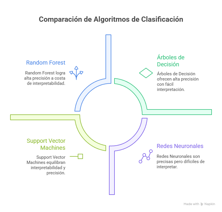 Los algoritmos de clasificación son una clase fundamental de métodos de aprendizaje automático, diseñados para categorizar o etiquetar datos en una o más clases discretas. A diferencia de la regresión, que predice un valor continuo, la clasificación se enfoca en la asignación de categorías, lo que la hace invaluable para una amplia gama de aplicaciones del mundo real. Desde la detección de fraude en transacciones financieras hasta el diagnóstico de enfermedades a partir de datos de pacientes, estos algoritmos identifican patrones en conjuntos de datos de entrenamiento para tomar decisiones informadas sobre nuevos datos. Los métodos que discutiremos, como los árboles de decisión, Random Forest, Support Vector Machines y las redes neuronales, ofrecen diferentes enfoques para resolver problemas de clasificación, cada uno con sus propias fortalezas y debilidades inherentes. Comprender sus principios de funcionamiento es clave para seleccionar la herramienta adecuada para una tarea específica y para interpretar sus resultados de manera efectiva.